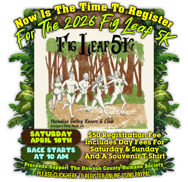Paradise Valley Resort & Club is a member based nudist community. We are a private member club only serving our members within our gated community. For information about membership options, please call the office at 706-265-6110. We do not accept on line reservations or late night drive ups. Valley Life is unique living, visiting and spending time in a gated nudist community. We host parties every Friday and Saturday night for our members as well as themed dinners Tuesday through Sunday. Every member at the Valley will tell you they only have one regret, they wish they had found the Valley many years before. Just like any organization, we are always looking to grow our Valley Family. If you would like to learn more about Paradise Valley, please call 706-265-6110 or stop by the office during business hours. |